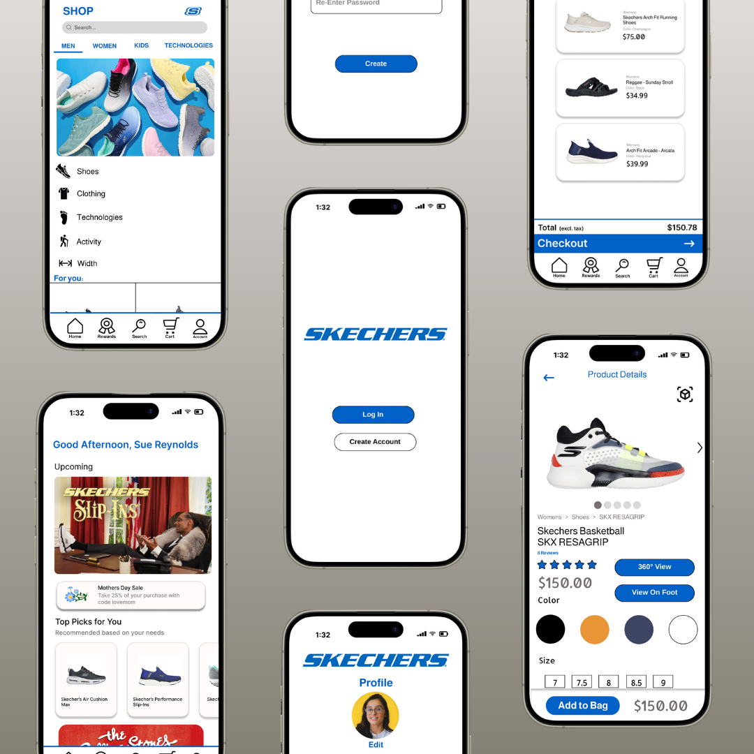 The team created low-fidelity (paper) prototypes to quickly test design concepts for the Skechers app. These prototypes allowed us to gather early feedback on layout, functionality, and navigation before investing time in high-fidelity designs.